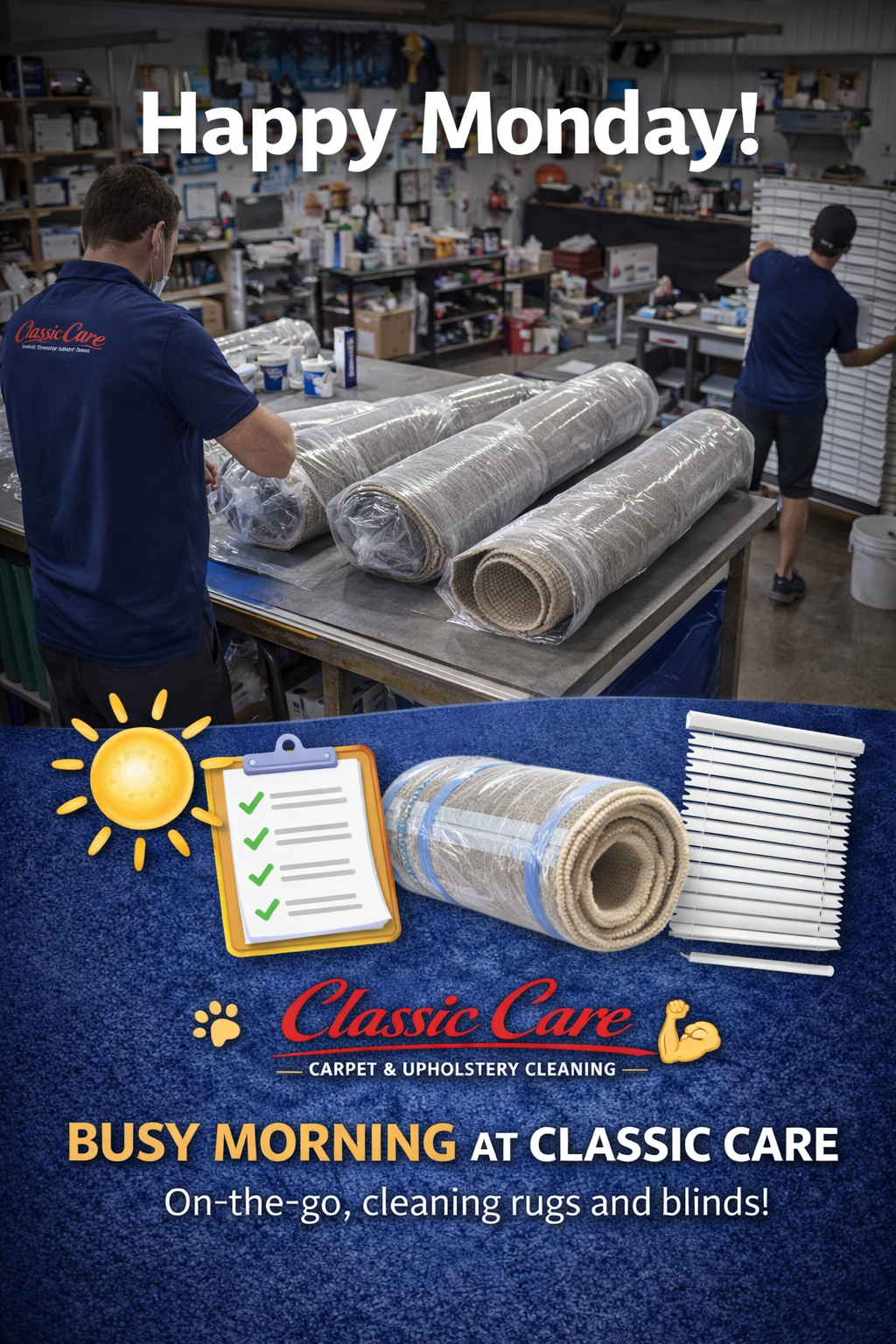 This afternoon will be a full blind-cleaning session, with several orders already in the shop—and more being picked up by our technicians throughout the day.