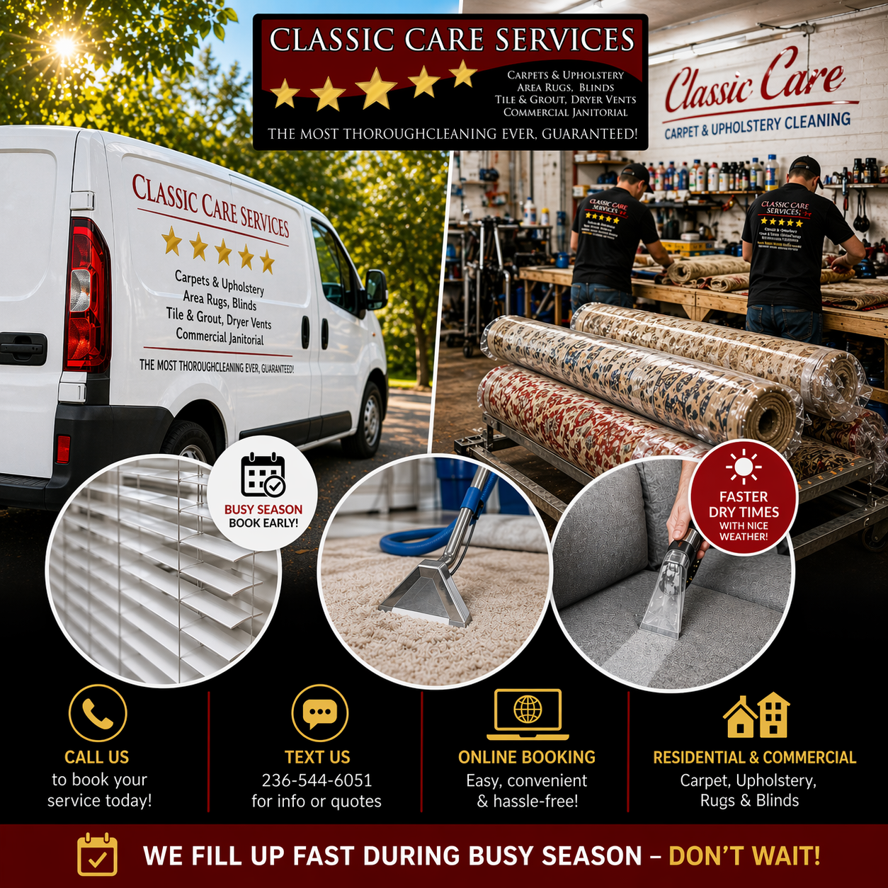 If you’re thinking about booking, don’t wait—our schedule fills up quickly during busy season.